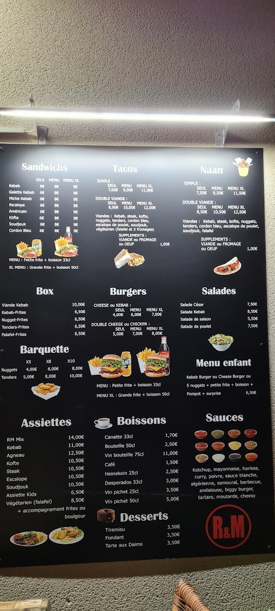 Welcome to R&M Kebab Tacos Naan, a hidden gem located at 552 Av. Martin Sauze, 07170 Lavilledieu, France. This vibrant eatery offers a unique blend of kebab, taco, and naan dishes that caters to diverse palates. Guests rave about the generously portioned meals and exceptional flavors, making it clear that every dish is crafted with care. The ambience is inviting; diners appreciate the cleanliness and warm hospitality of the staff, ensuring a comfortable dining experience.